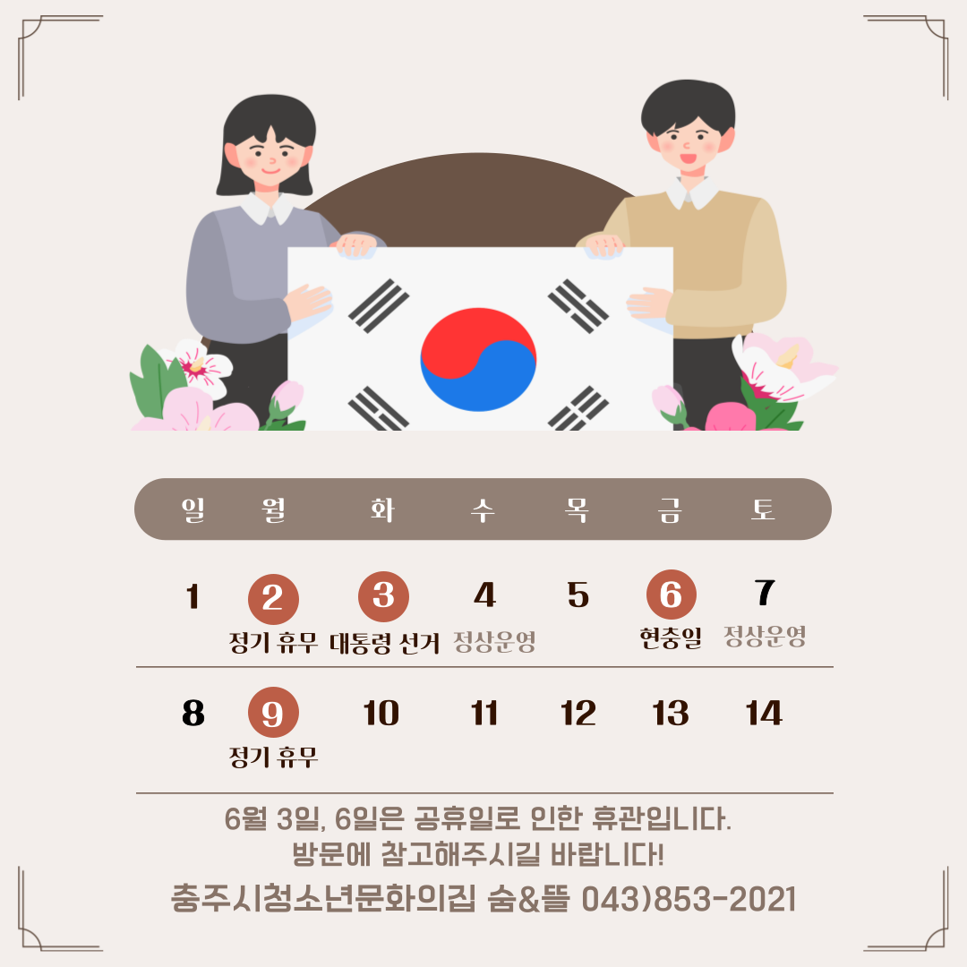 6월 휴관일 안내드립니다. 이용에 차질 없으시길 바랍니다.
