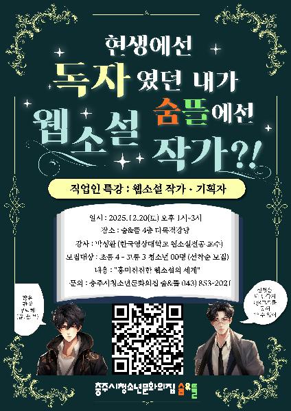 | 접수종료모집 2025 숨뜰 직업인 특강 : "현생에선 독자였던 내가 숨뜰에선 웹소설 작가?!" | |||